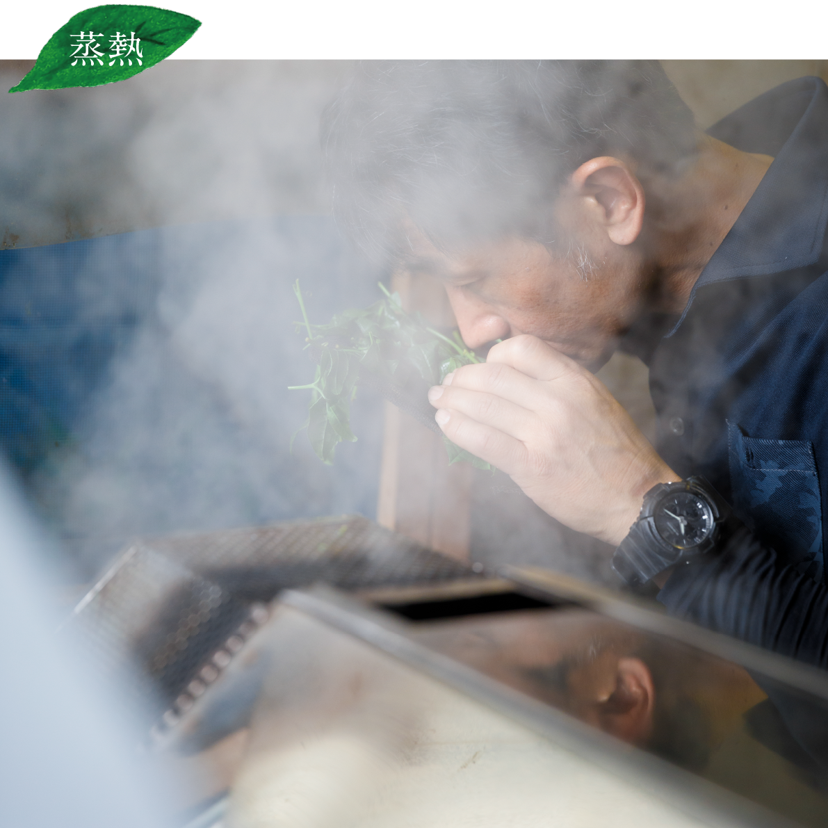 The separated new leaves are steamed depending on their condition. This steaming process is a crucial step in the traditional cultivation of Uji. The optimal steaming is determined by the smell and color of the steamed leaves, using all five senses. This delicate balance of steaming time is critical to ensuring the success of the hard work.
