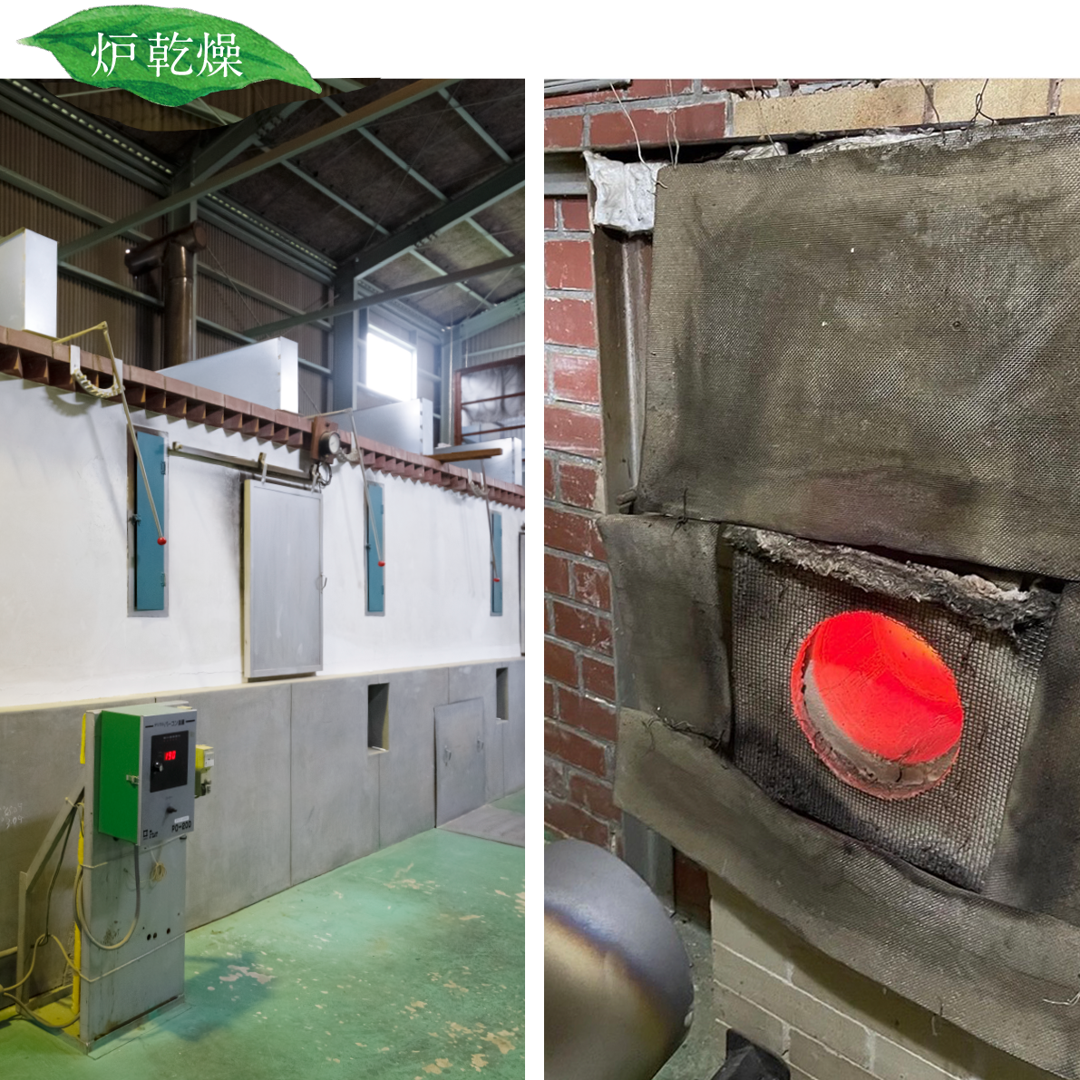 The leaves are placed in a 15-meter-long tencha roaster, which has three tiers of belt conveyors inside, and are dried at 180-200°C for about 20 minutes. Not a hot air drying process but this unique drying process with the roaster, is one of the conditions of a defining characteristic of "Uji Tencha".