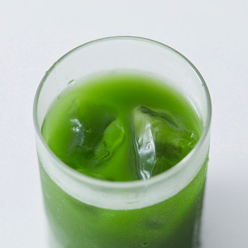 グリーンティーパウダー25g(大さじ2杯)をカップに入れ、冷たいお水または牛乳を180ml注ぎます。氷を入れてよくかき混ぜてからお召し上がりください。〈お好みで濃さをご調整ください〉